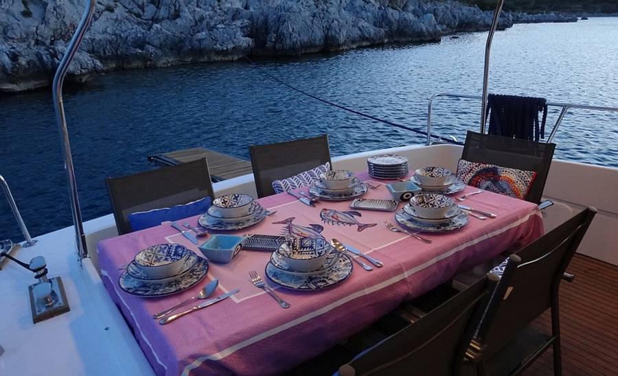 » Yiyecek ve içecek seçiminiz üzerine, alışveriş düzenlenebilir ve bizim tarafımızdan ayrılmadan önce yatta hazır olun.